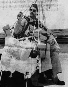 He was immediately greeted by authorities who arrested him. When reporters asked him why he attempted this flight he responded, “A man can’t just sit around.”