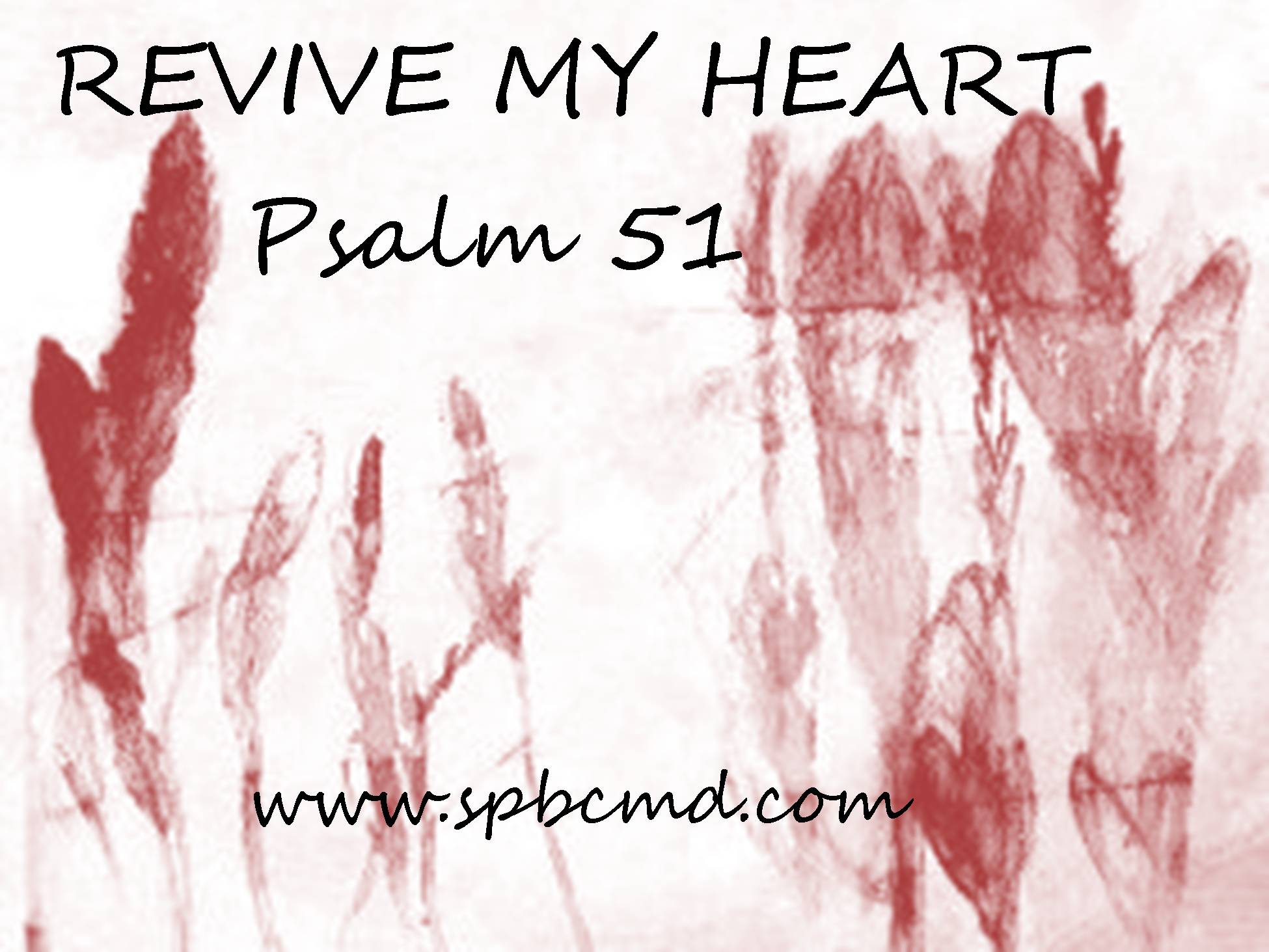 This series is about such a heart transplant, from Psalm 51 called, Revive My Heart . It is a serious call to evaluate our salvation and spiritual growth. We need to understand that repentance is more than regret; true repentance of sin and true revival of our hearts is not about us trying harder or doing more religious works but about trusting in Jesus Christ and treasuring God’s ways and God’s word more than we rely on our own wisdom.