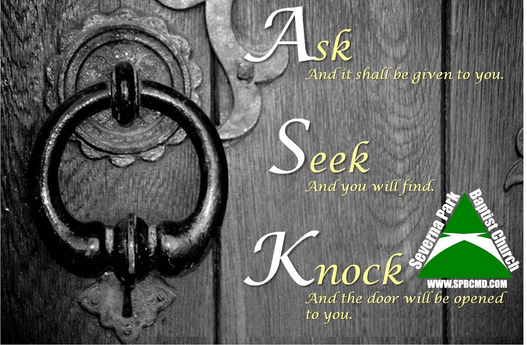 - Ask: God is near. Seek: God is removed. Knock: God is hidden.