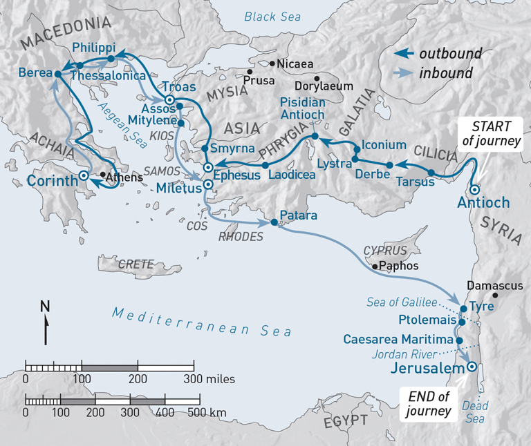 Acts 18 19 And they came to Ephesus, and he left them there, but he himself went into the synagogue and reasoned with the Jews. 20 When they asked him to stay for a longer period, he declined. 21 But on taking leave of them he said, “I will return to you if God wills,” and he set sail from Ephesus. 22 When he had landed at Caesarea, he went up and greeted the church, and then went down to Antioch. 23 After spending some time there, he departed and went from one place to the next through the region of Galatia and Phrygia, strengthening all the disciples.