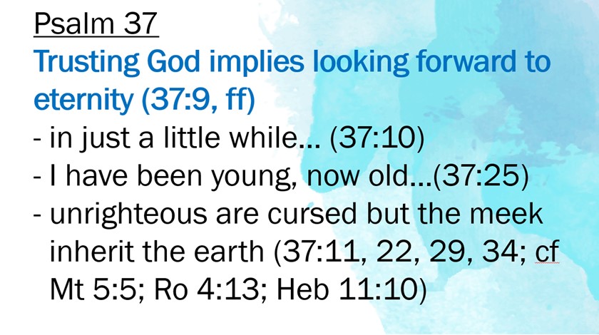 Trusting God implies looking forward to eternity and not just the present earth (Psalm 37:9-22).